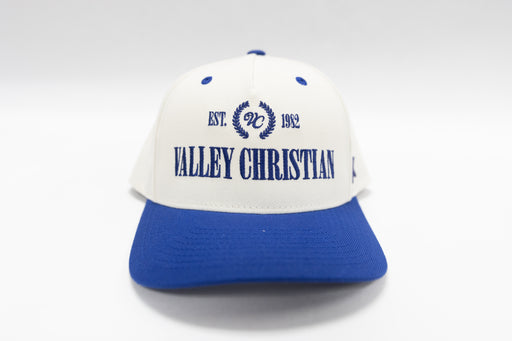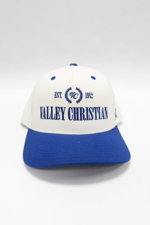 View full detailsShow your classic Valley school spirit in this cream and signature royal blue hat! This hat features a semi-curved bill, snapback, and royal blue a...